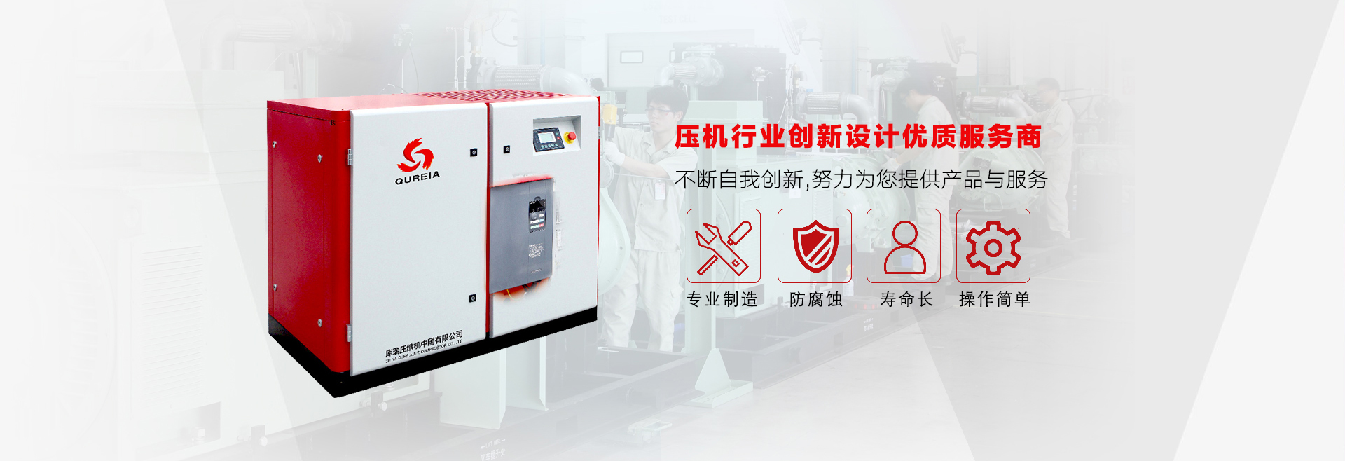 致力于生產(chǎn)空氣壓縮機(jī)、空氣凈化器材、空壓機(jī)正廠原裝配件的推廣、銷售、服務(wù)。